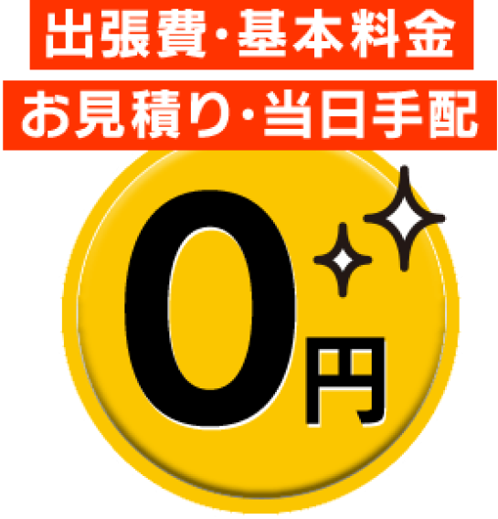 出張費、基本料金、お見積り、当日手配0円!